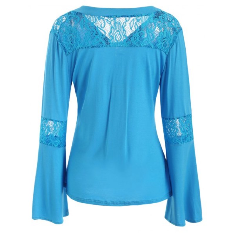 Lace Insert Bell Sleeves T-shirt - Glacial Blue Ice