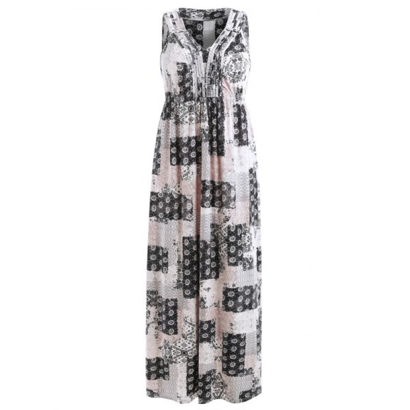 Patchwork Print Bohemian Maxi Dress -