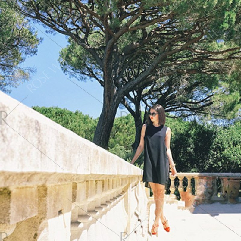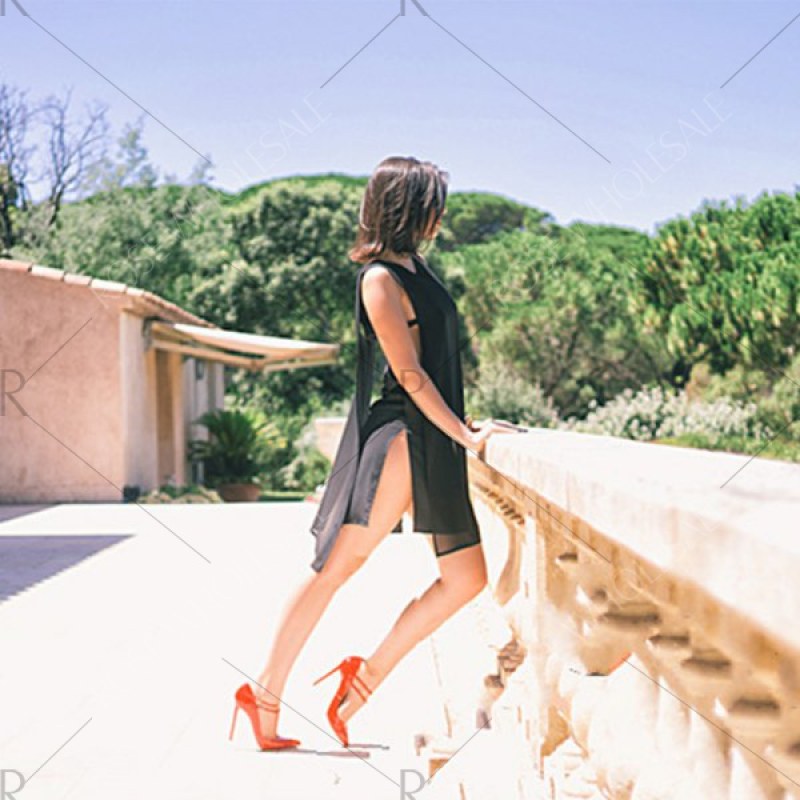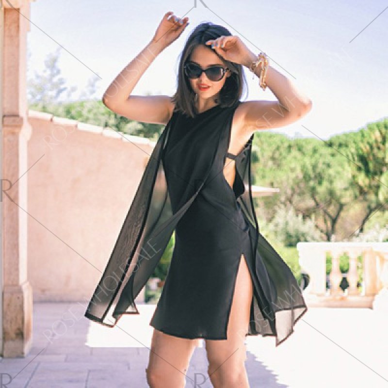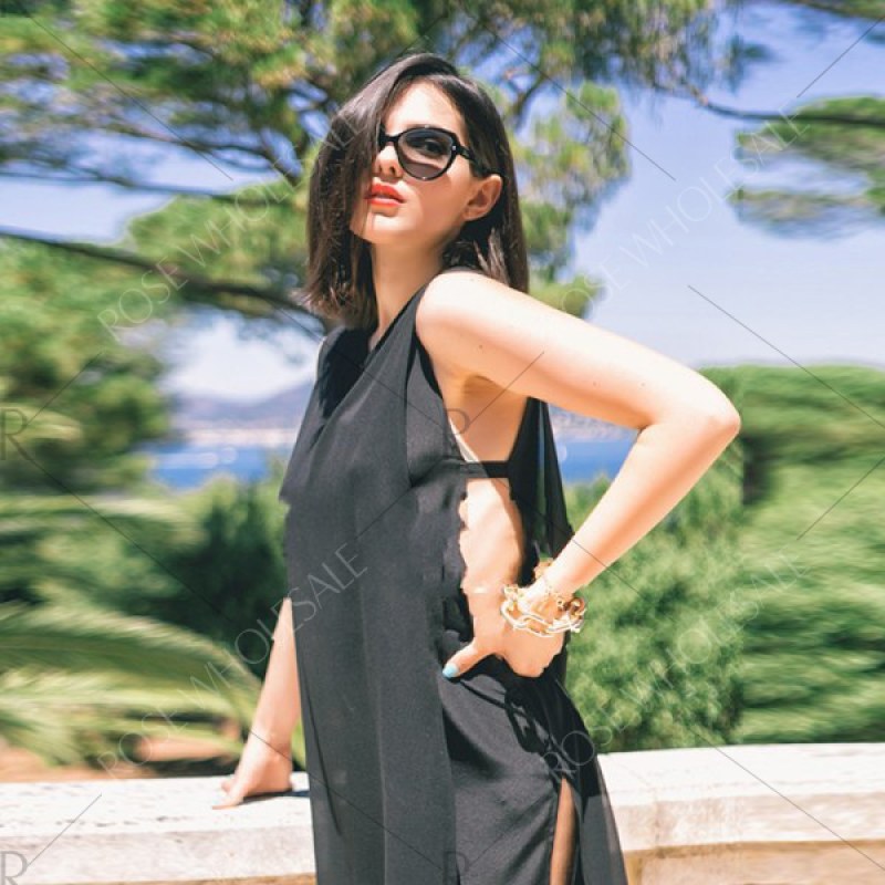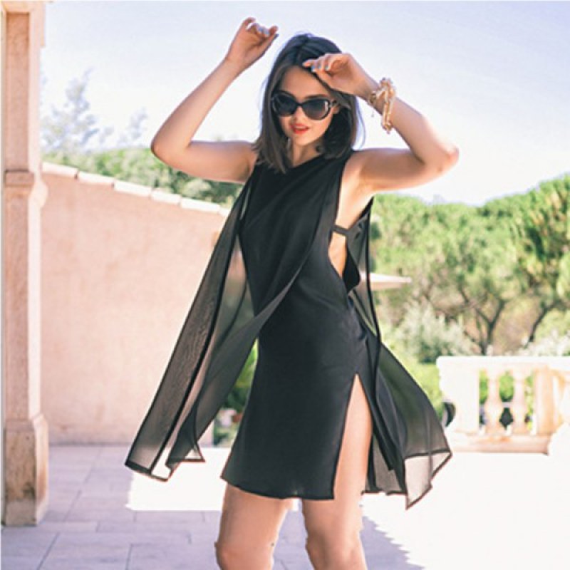 2016 new arrival summer style sexy high side split design woman sleeveless fashion chiffon dress - Black